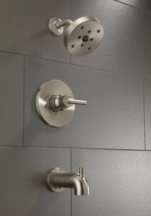 The sleek, minimalist design makes this Tub and Shower Faucet is the perfect complement to today’s modern home. H2Okinetic showers sculpt the water into a unique wave pattern, giving you the feeling of more water without using more water. The warm, drenching water coverage is the result of a denser water pattern and larger droplets that retain their heat longer to soothe and revitalize you. Getting ready in the morning is far from routine when you are surrounded by a bath that reflects your personal style. You can buy with confidence, knowing that Delta backs this faucet with a lifetime limited warranty. The design was inspired by the sleek elegance of modern European design.